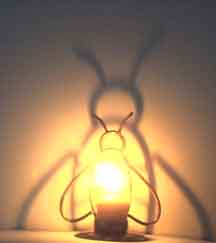 This bee design holds one votive candle. Price $10 plus shipping. Candles not included.