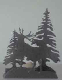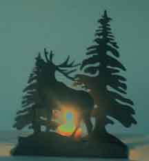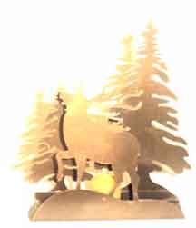 This moose/conifer design holds one votive candle. Price $10 plus shipping. Candles not included.